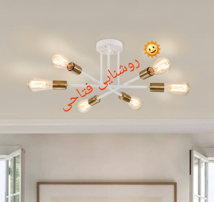 لوستر سقفی شش شعله مدرن سفید طلایی