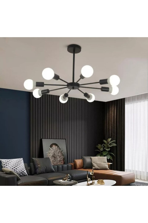 لوستر سقفی هشت شعله مدرن رنگ مشکی درج یک