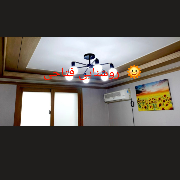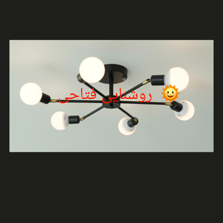 لوستر سقفی شش شعله متحرک، بازو ها بالا پایین و چپ و راست میشن رنگ تمام مشکی